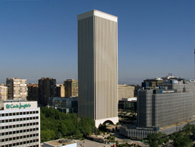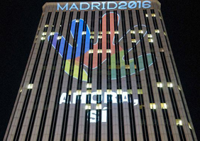 07/10/2008Two 6,000-watt spotlights on an adjacent building project the logo onto the facade that faces Paseo de la Castellana.FCC, which owns the building, is...