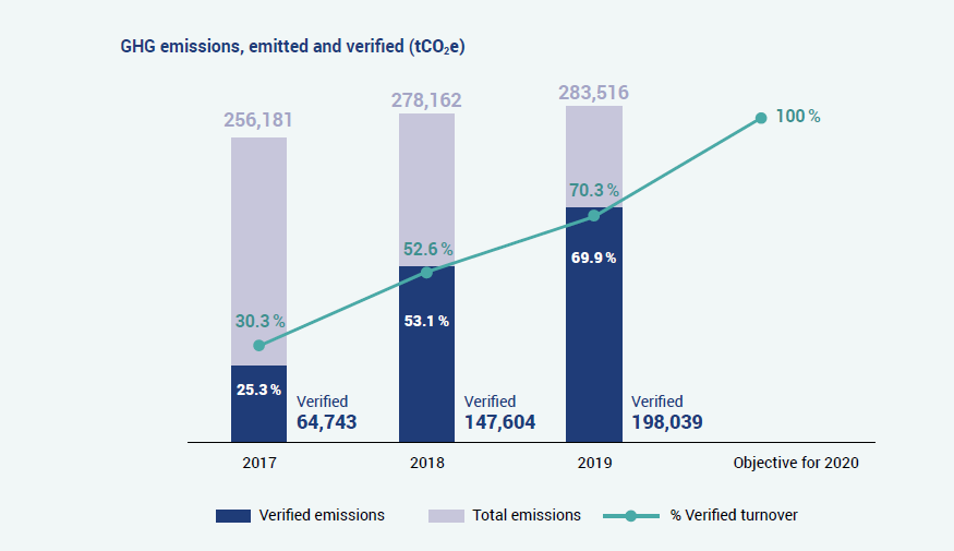 The work to achieve this objective has meant that the company's latest verified GHG emissions report quantifies the GHG emissions produced in 12 countries in fiscal year 2019, which implies verifying 70.3% of the company's activity. FCC Construcción and 69.9% of the organization's GHG emissions.
