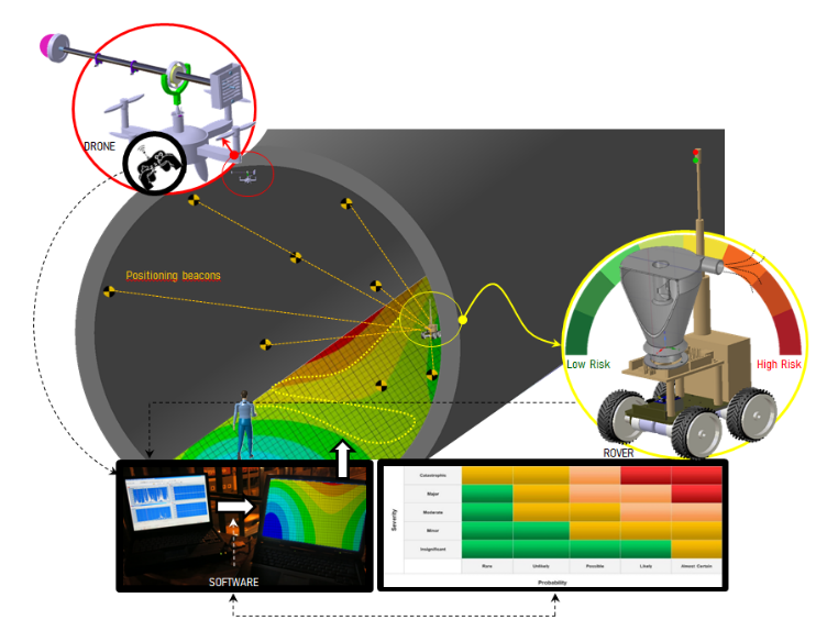This platform will be based on a set of mobile nodes, one terrestrial and the other aerial, with the capacity to identify/estimate carcinogenic agents, specifically asbestos and respirable crystalline silica (CRS), and a system that allows establishing alerts and recommendations, supporting the decision of decisions of the PRL technicians in situations of risk of the carcinogenic agents considered.
