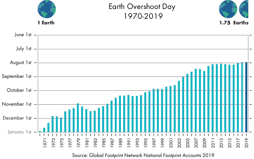In the last 20 years, the planet's overcapacity day has advanced three months. The fact that on July 29, mankind has used the budget of nature's resources for the entire year 2019, means that we are using natural resources 1.75 times faster than the planet's ecosystems produce them.