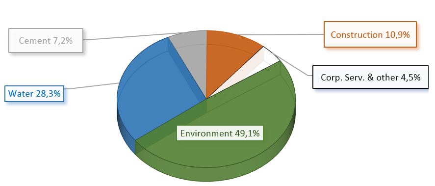 With regard to Ebitda progress by business area, the activities related to utilities, environment (49.1%) and water (28.3%) in total generated 77.4% of consolidated Ebitda in the first quarter of 2019; Construction with Ebitda of 10.9% and Cement of 7.2% are noteworthy for their greater contribution to the Group.