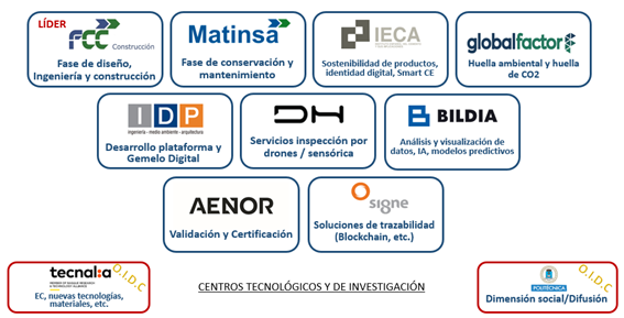 The “SOSTEVAL-TEC” project, whose consortium is led by FCC Construcción and is made up of companies such as MATINSA, AENOR, IDP, SIGNE, IECA, GLOBAL FACTOR, DRONE HOPPER, BILDIA, has the collaboration of the TECNALIA technology centers and the Polytechnic University of Madrid as well as the collaboration of FI GROUP as an external R&D&I consultant.+D+i.