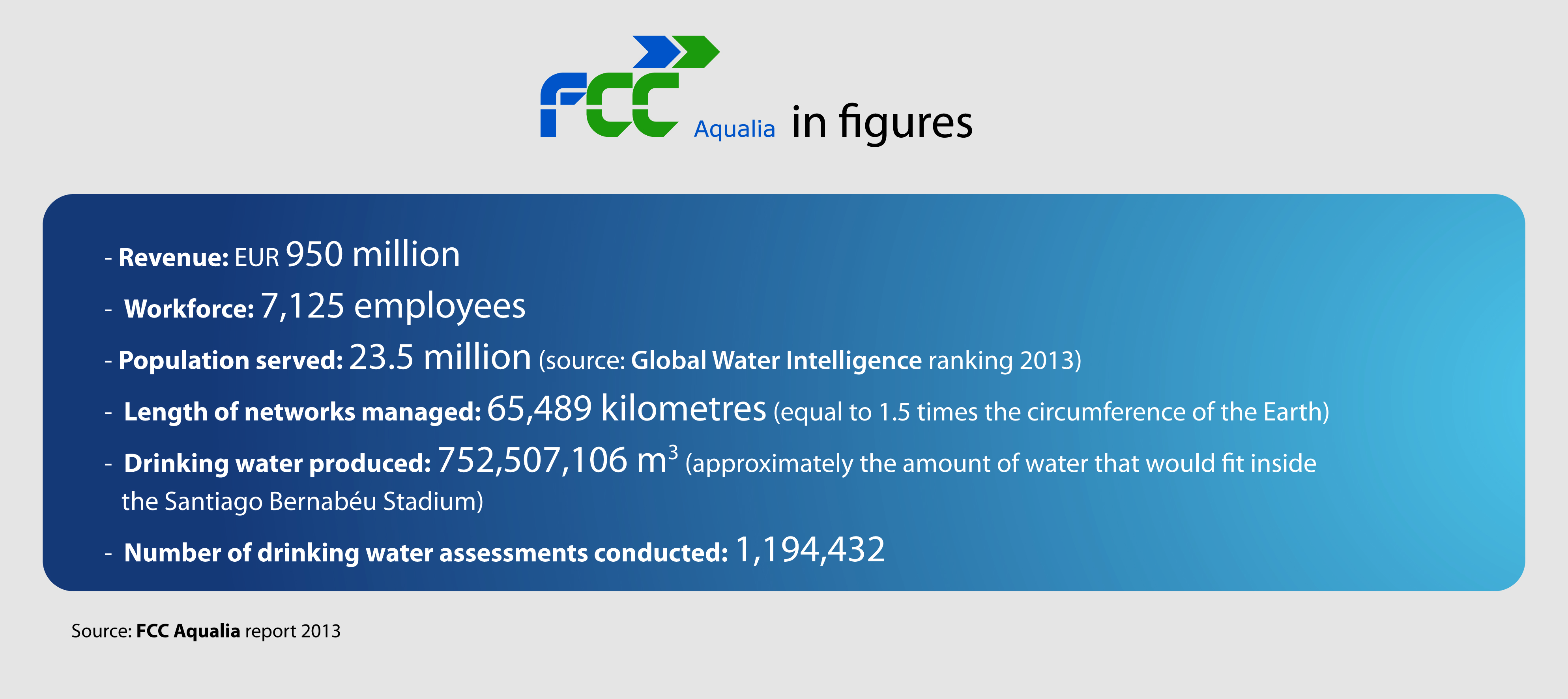 FCC Aqualia is the water management company at FCC, one of the leading citizen services groups in Europe. The company is the Spanish leader in its sector, the third private water company in Europe and the sixth in the world, according to the latest ranking by the specialist publication, Global Water Intelligence (GWI), and it handles 23.5 million users.