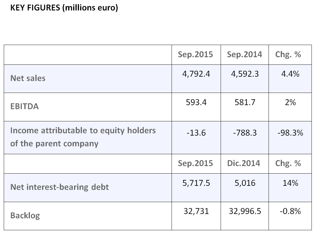Cumulative figures are reduced by declines in the performance of Cementos Portland Valderrivas, the cement division. This is mainly due to the low sale of CO2 emission rights (€3.9 million for the period against €19.3 million for the same period in 2014), and to a lesser extent, in construction.