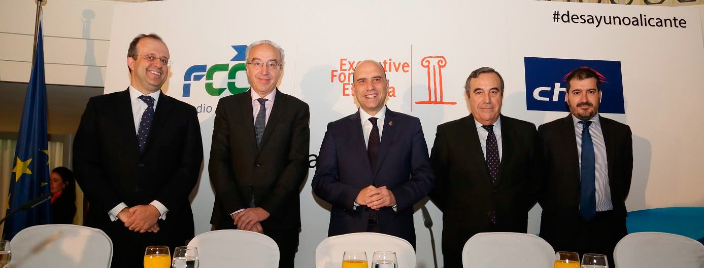 Gabriel Echávarri, the mayor of Alicante, was the key participant at an informative breakfast organised by Executive Forum España in Madrid. The councillor was accompanied at the congress by José Luis Rodríguez Zapatero, the former president of Spain, and Antonio Hernando, the spokesperson of the PSOE (Spanish Socialist Workers' Party).
