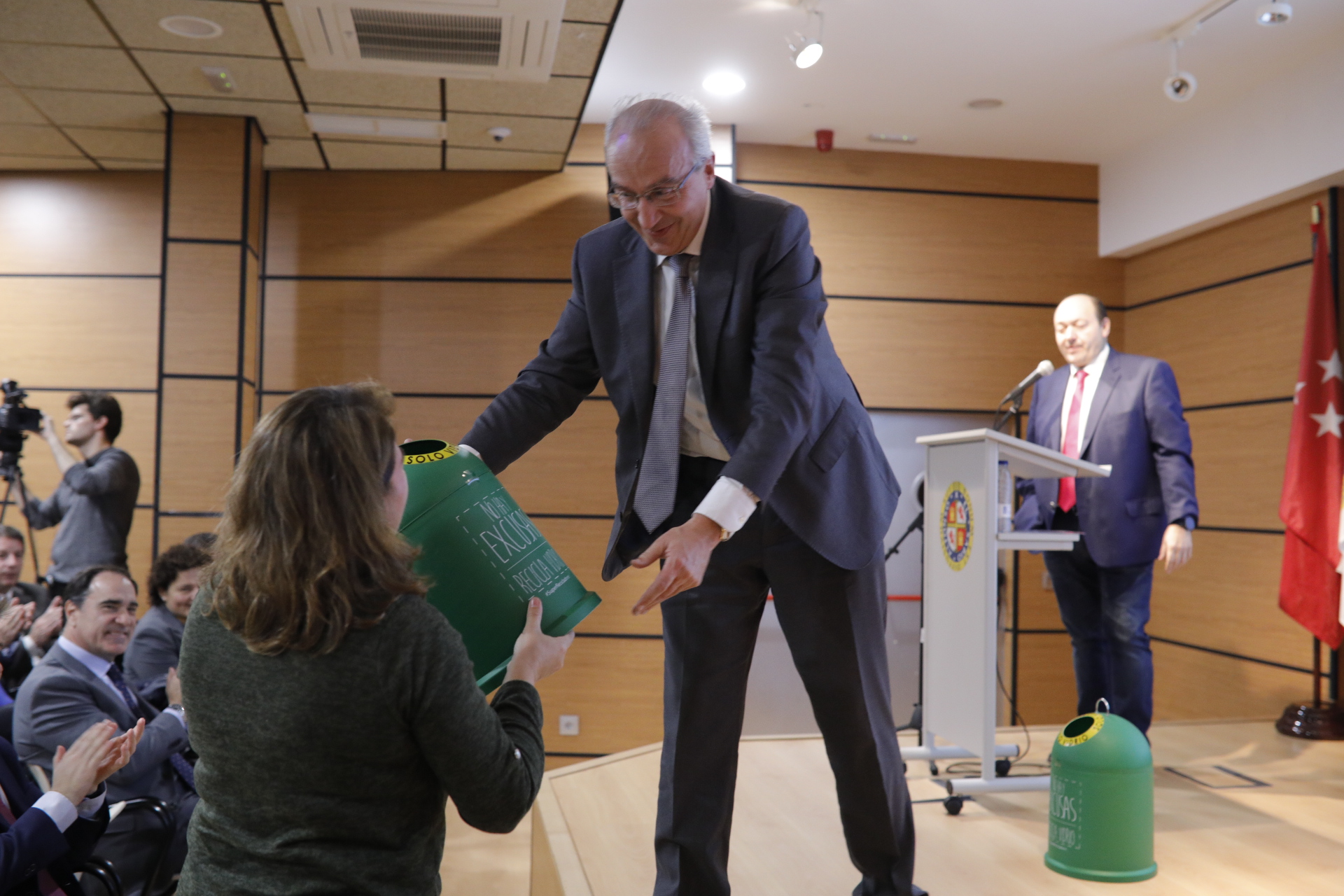 Representing FCC in this meeting on more sustainable cities was Jordi Payet, Chief Executive Officer of FCC Medio Ambiente. He took part in the discussion table on “Urban collection: innovation and environmental effectiveness,” where the matter of the accessibility of bins, as one of the problems of greatest concern for those involved in waste collection, was discussed. At the end, Jordi Payet presented a trophy in the form of a glass bin to a school for a student’s brilliant question.