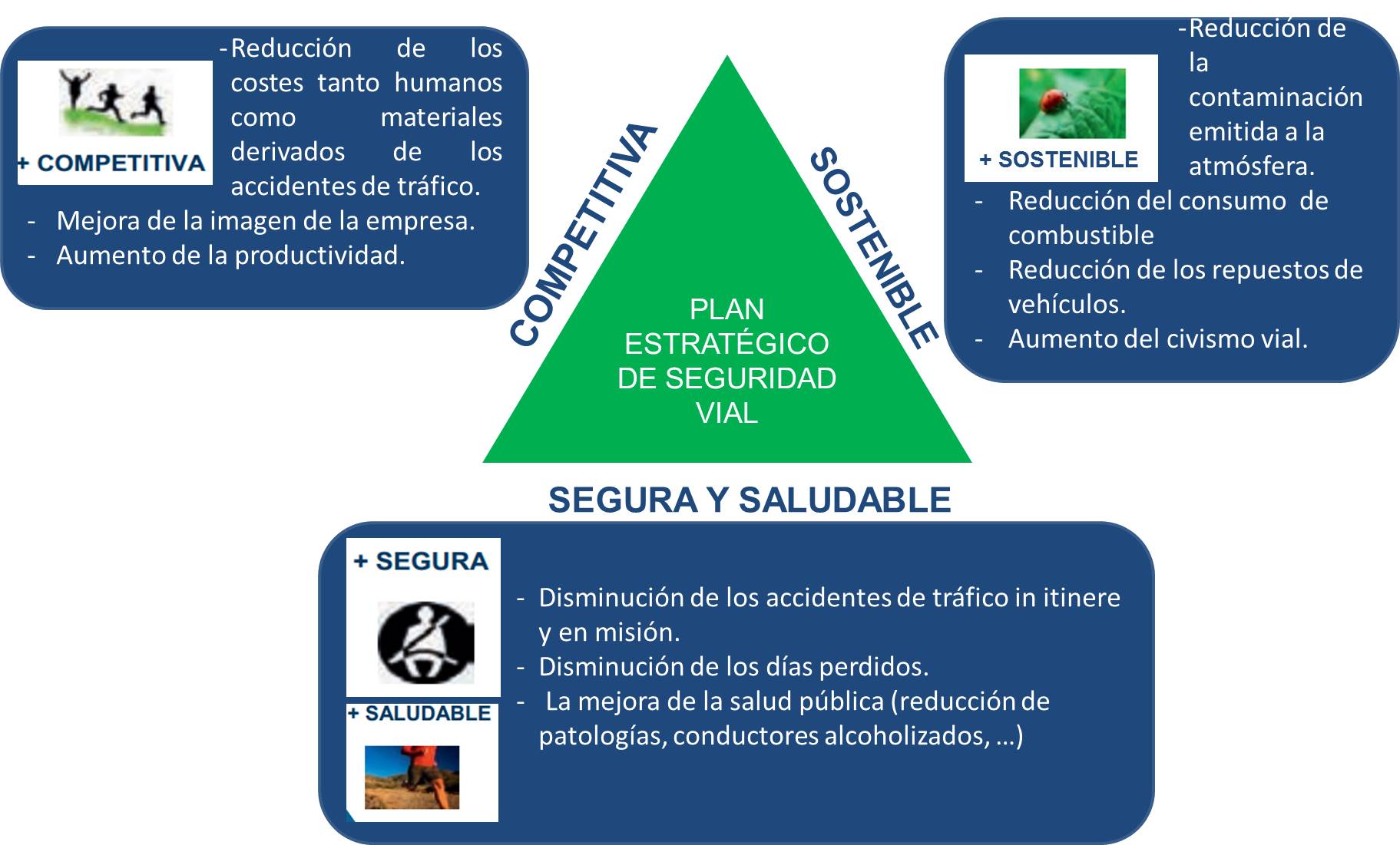 • Competitive business: All actions taken towards improving road safety increase business productivity, reduce repair costs and extend the service life of equipment, apart from the natural savings in terms of human and material costs associated with traffic accidents.