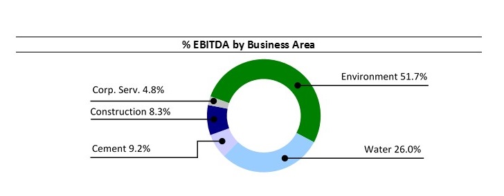 EBITDA performance by the Environmental Services business was outstanding, as it increased EBITDA by 11.4% to €103.2 million. The Cement division also performed strongly, with EBITDA up 35.9% to €18.4 million. The Water division reported €51.9 million, 1.4% more than in the year-ago quarter, and the Construction division increased EBITDA by 3.8% to €16.5 million.