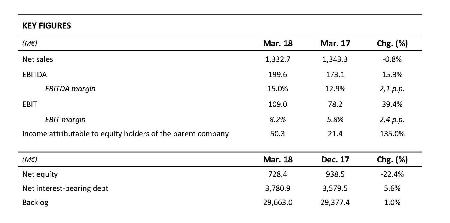 FCC's attributable net profit amounted to €50.3 million in the first quarter of 2018, a substantial increase on the €21.4 million reported in the first quarter of 2017.