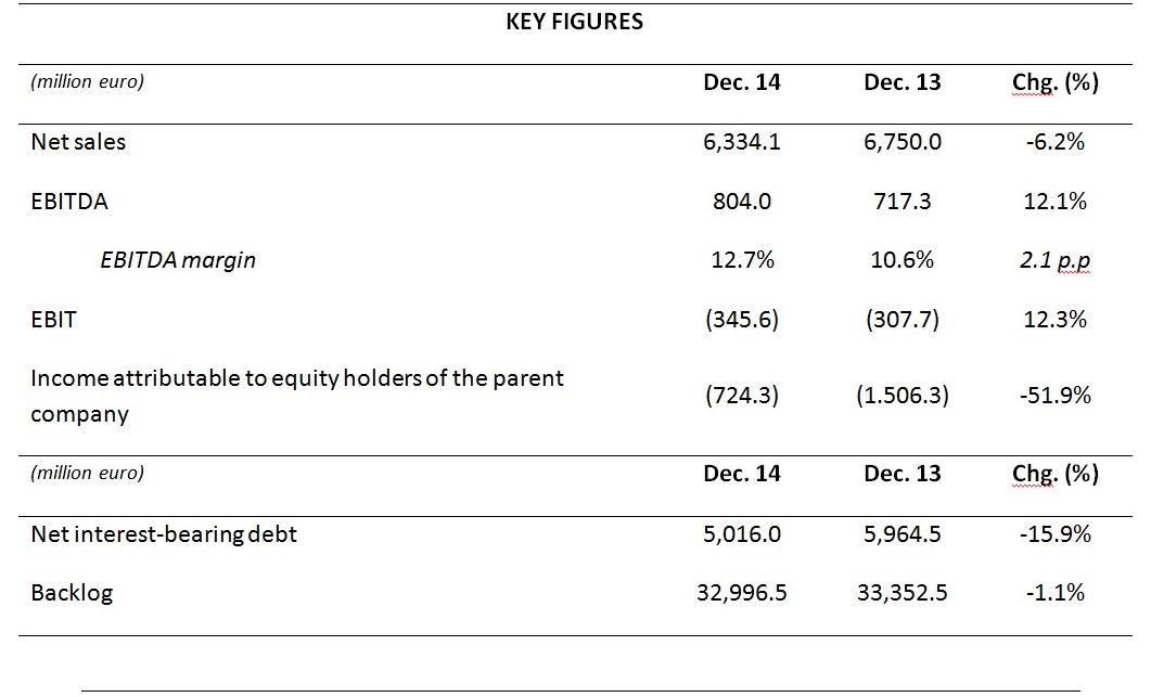 The improvement in financial debt is one of the highlights of the 2014 results. At year end, after the capital increase carried out in December, the Group's debt stood at €5.016 billion, representing a decrease of 15.9% compared to the amount on the books at the end of 2013.