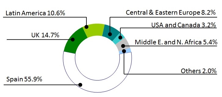 Indeed, the Spanish market accounts for 80% of the drop, and only 20% is due to projects in other countries around the world. On the international front, more selective objectives have been set, focusing on optimising profitability and the generation of cash rather than simply expanding business.