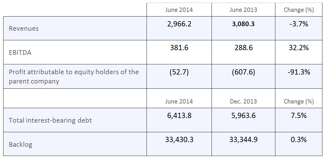 FCC reduced losses to 52.7 million euro in the first half of 2014, 91.3% less than in the same period of 2013. The effect of the adjustments which commenced last year and greater profitability of the international activities are beginning to be felt: EBITDA increased by 32.2% with respect to the year-ago period, to 381 million euro