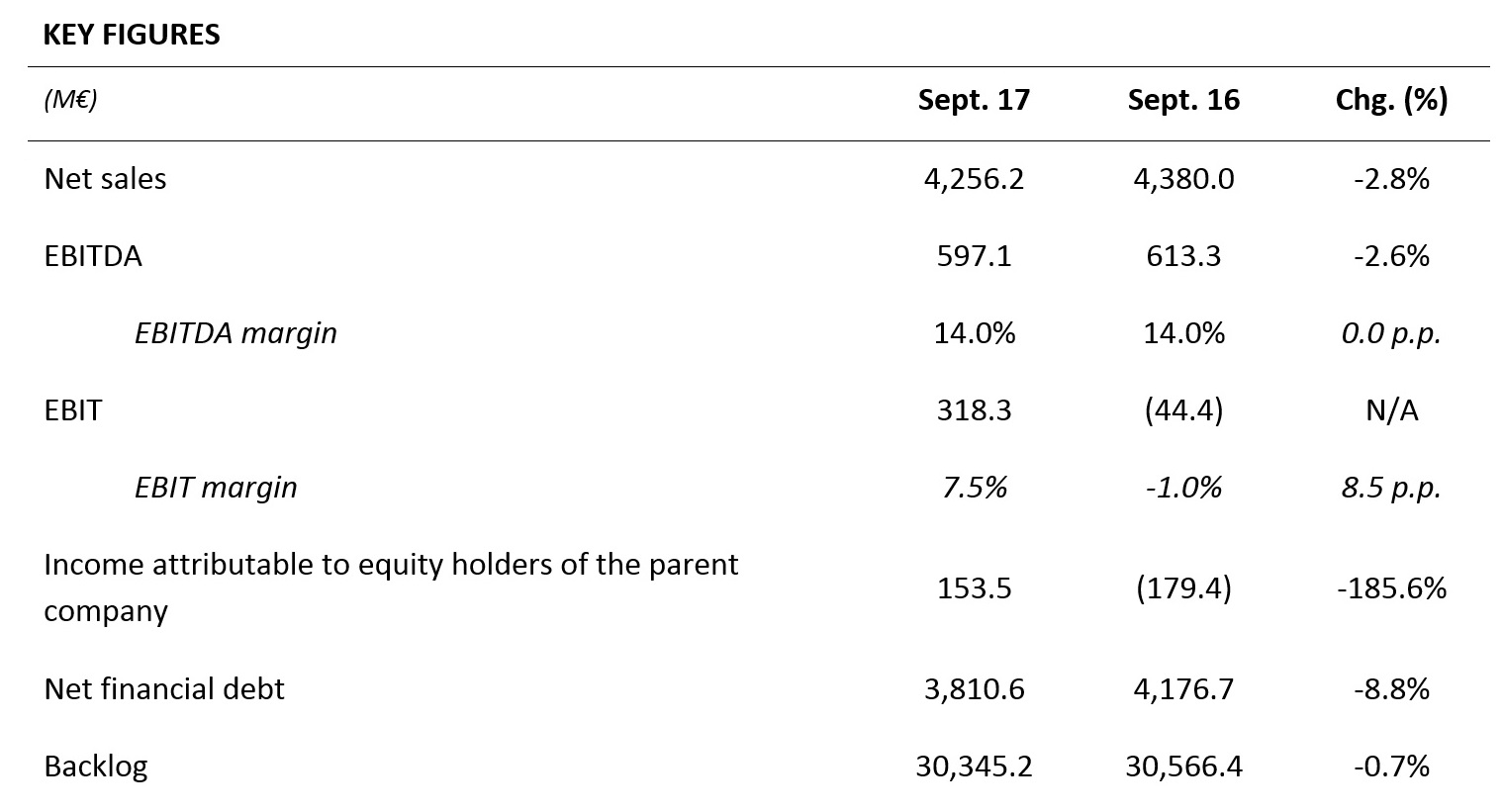 In terms of the business areas, Water reported €181.6 million in EBITDA, a 6.3% increase year-on-year, while Construction reported €50.5 million in EBITDA, 48.5% more than in the same period of 2016. The Environmental Services area obtained €306 million, a 3.8% decline, mainly due to the depreciation of both the pound sterling and the Egyptian pound, and to higher energy costs.