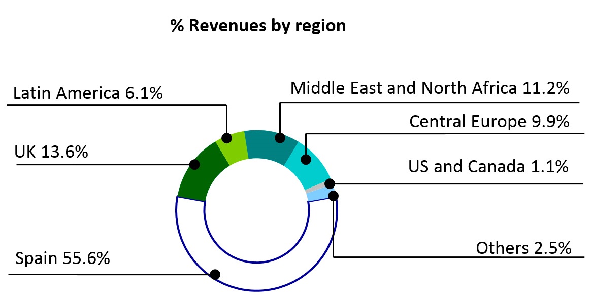FCC Group's consolidated revenues amounted to €4,256.2 million in the first nine months of 2017, a 2.8% decline year-on-year. This was mainly due to the deconsolidation of the US cement business in November 2016 and, to a lesser extent, the depreciation of certain currencies against the euro. Adjusting for both effects, consolidated revenues would have increased by 2.3% with respect to the same period of 2016.