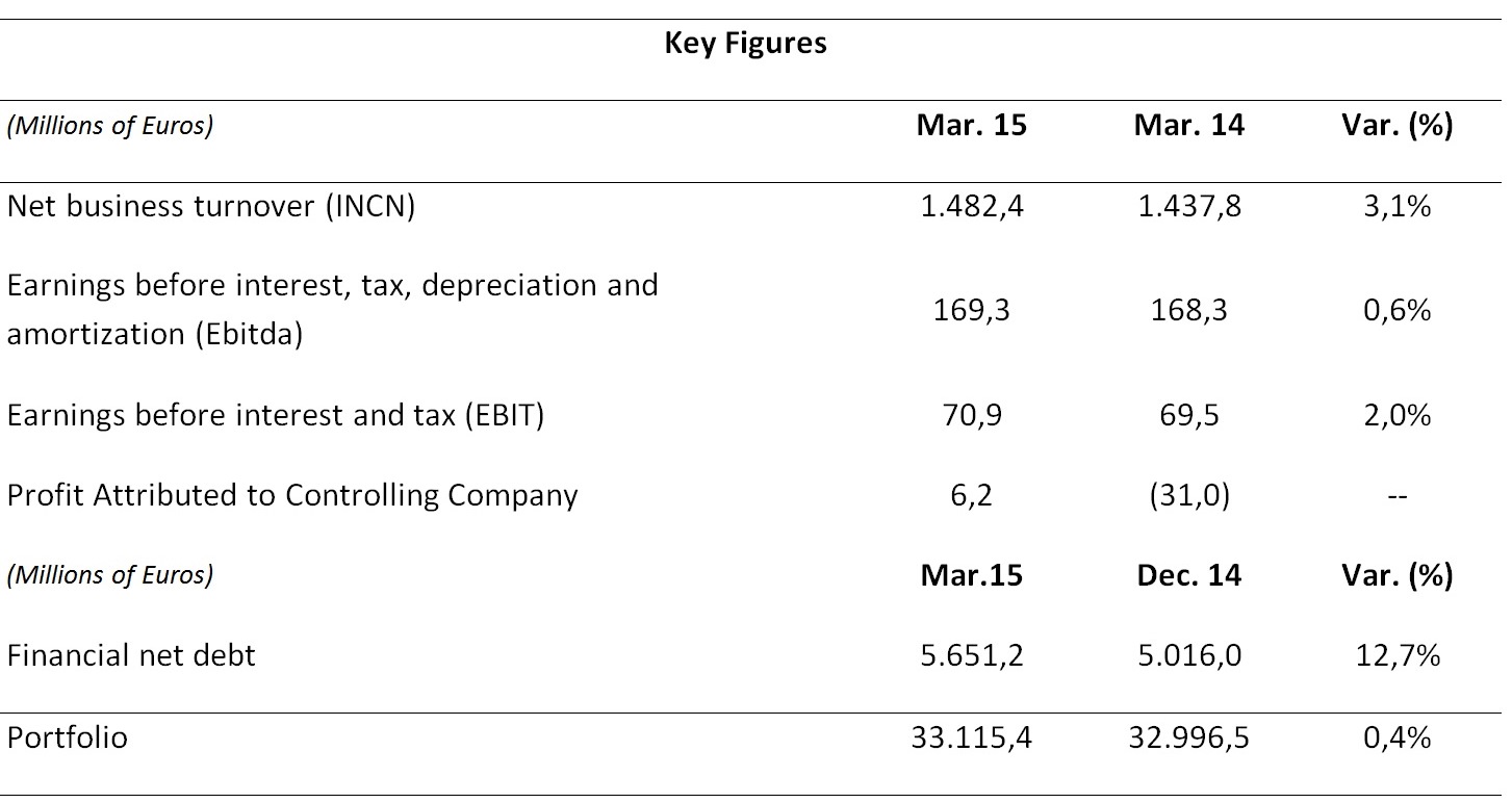 The financial debt has gone down to 5.6512 billion euros, which supposes an increase of 635.2 million euros in respect to the end of 2014. This evolution is a consequence primarily due to the seasonal capital expansion circulation and the negative impact of the type of change. For its part, the financial net costs are reduced by 21.9% thanks to the reinforcement of the capital structure finalised the previous year.