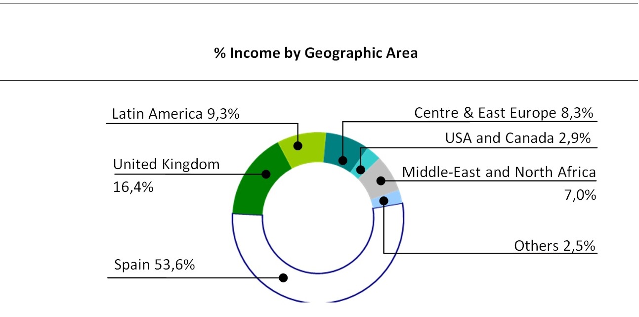 The consolidated income of the Group has increased by 3.1% year on year in the first term of 2015, reaching up to 1.482,4 million Euros. This result is primarily explained by the increase of 10.9% in the invoicing from international markets, especially in the fields of Water Comprehension Management and Environmental Services.