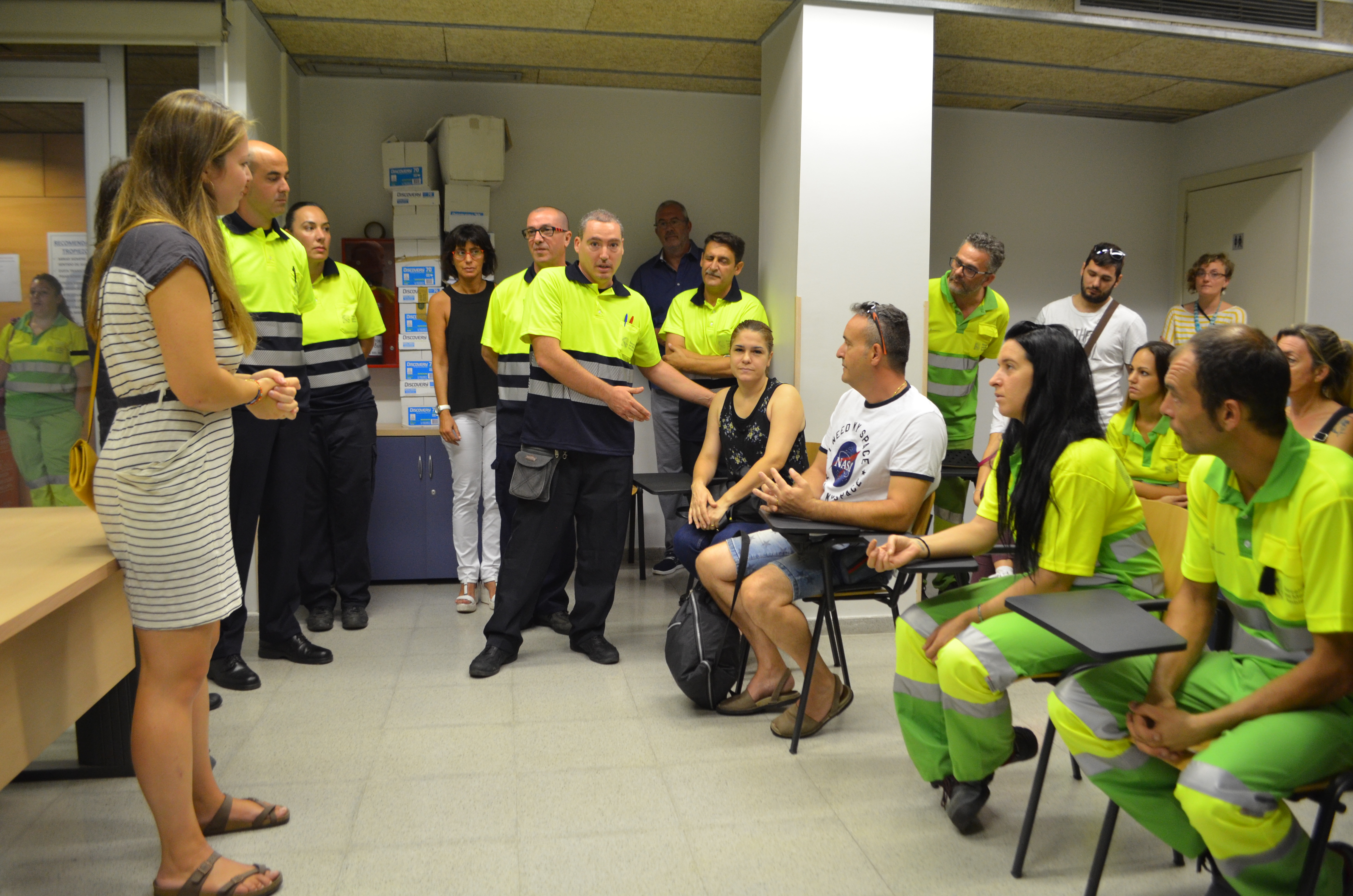 The councillor was accompanied by the Environment and Urban Services Manager, Jordi Ribas, and Ecology Commissioner, Frederic Ximeno. This machinery park is the location of the company´s operational headquarters and from here the cleaning and the waste collection in the Ciutat Vella district is carried out.