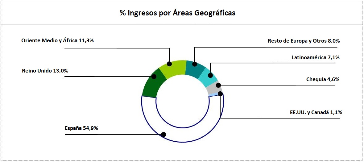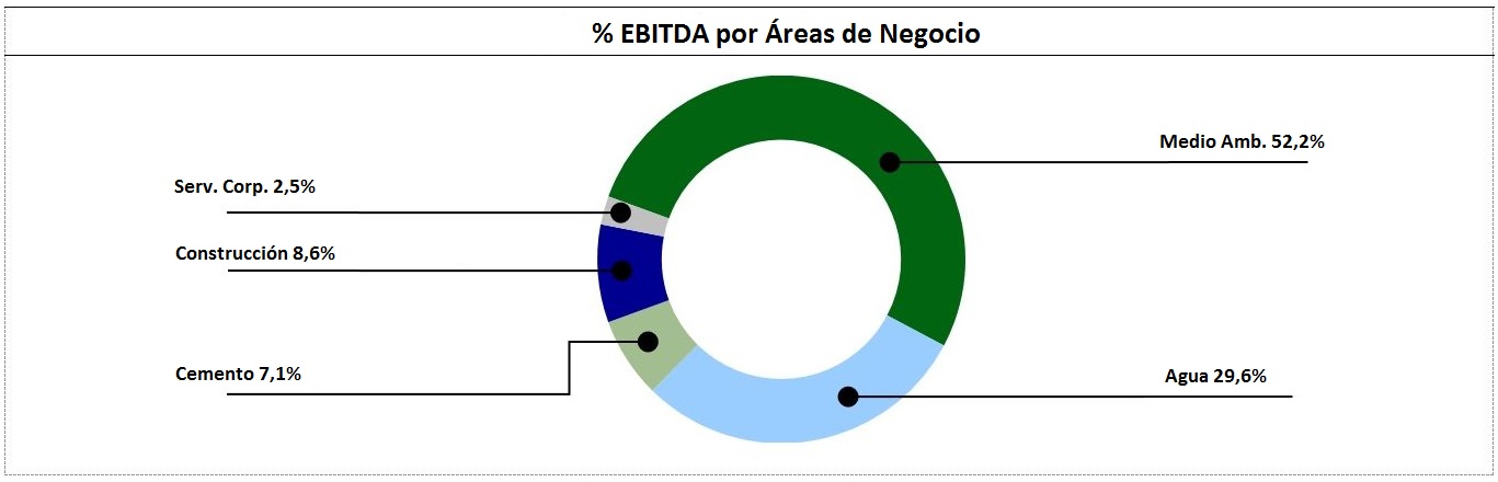 A cierre del año, las áreas de Servicios Medioambientales y Gestión Integral del Agua suponen un 81,8% del resultado bruto de explotación del Grupo, mientras que el 18,2% restante proviene de las actividades vinculadas a la construcción de infraestructuras, edificación y otras menores.