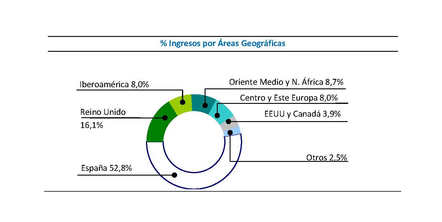 Esta evolución de la cuenta de resultados se apoya en la positiva evolución de los ingresos, con un aumento interanual del 4,4% hasta los 4.792 millones de euros, impulsados por la mejora de un 14,7% de la actividad en los mercados internacionales, donde se registran crecimientos superiores a los dos dígitos en todas las áreas de negocio. En España, los ingresos ceden un 3,4%, hasta los 2.528,1 millones de euros, debido principalmente a la contracción del 14,6% de los ingresos domésticos en Construcción, como consecuencia del descenso continuado de la inversión pública en infraestructuras.