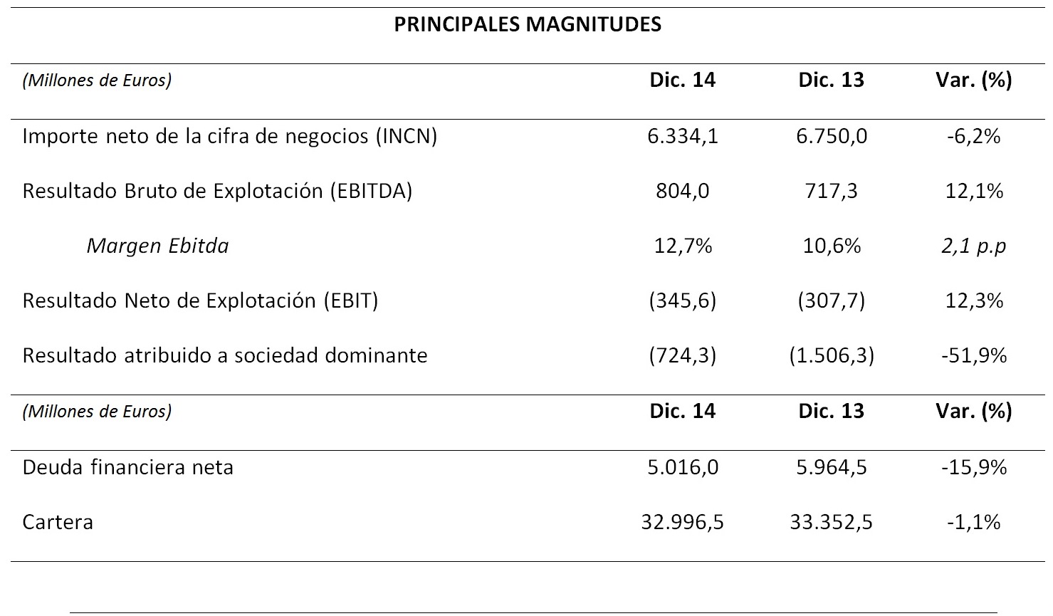 Las medidas de eficiencia y reestructuración adoptadas en el Plan Estratégico puesto en marcha en el segundo trimestre de 2013 comienzan a dar sus frutos. El beneficio bruto operativo (Ebitda) de FCC durante 2014 alcanzó los 804 millones de euros, lo que supone un aumento del 12,1% respecto al registrado un año antes.