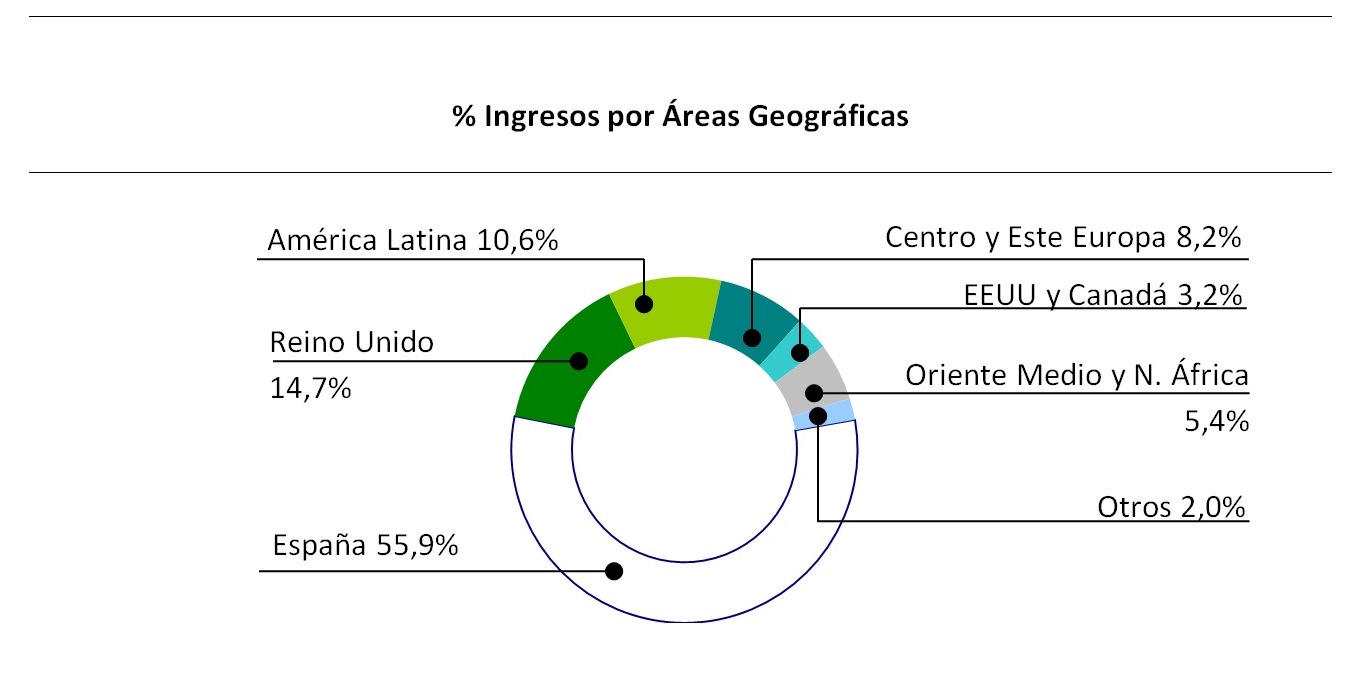 Por áreas geográficas destaca el fuerte crecimiento del 90,3% de los ingresos en Oriente Medio y Norte de África debido al arranque de las obras del metro de Riad, en el área de Construcción. Por el contrario, los ingresos en América Latina se redujeron un 27,1%, principalmente por la finalización de otros proyectos como los de la línea 1 del metro y el reordenamiento vial de la ciudad de Panamá. Por su parte, el inicio de las obras del metro de Lima está previsto para el segundo trimestre de 2015.