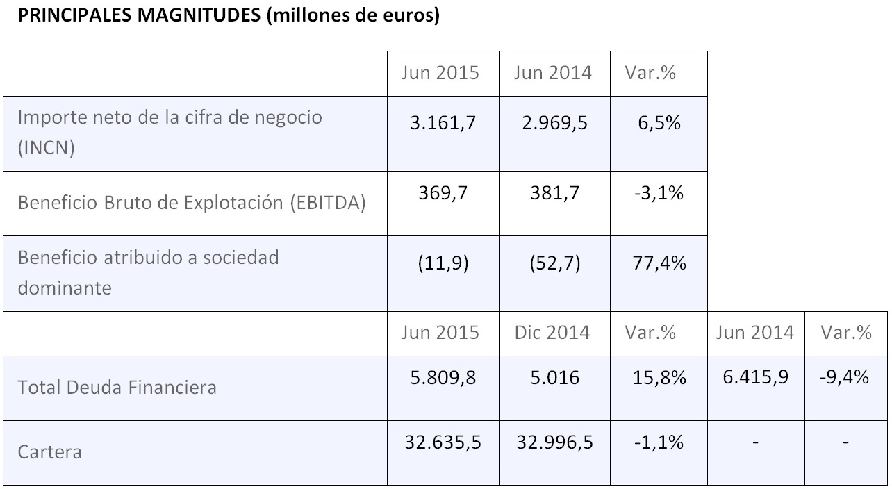 El Ebitda alcanza los 369,7 millones, un 3,1% inferior al del primer semestre de 2014