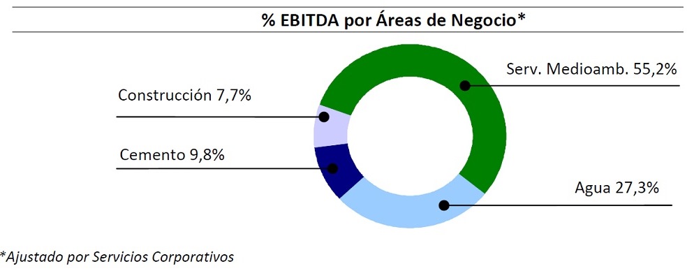 Este comportamiento de las áreas de Medio Ambiente y Agua hace que el resultado bruto de explotación (Ebitda) alcance los 369,7 millones, un 3,1% menos que en 2014, afectado por los menores resultados excepcionales por las ventas de CO2 registrados en Cemento en la primera mitad de 2014. De hecho, Medio Ambiente y Agua generan 82,5% del total del Ebitda.