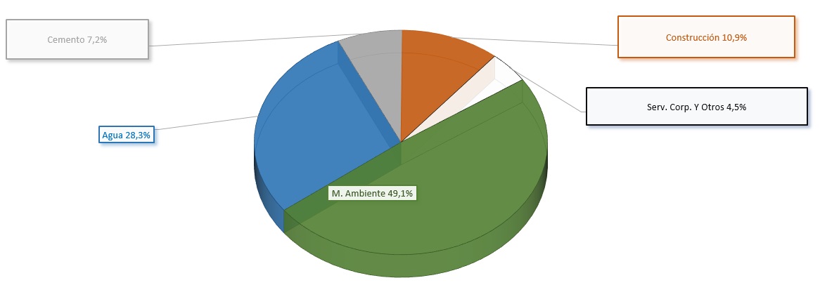 En cuanto a la evolución del Ebitda de las áreas de negocio es de destacar, por su mayor contribución al Grupo, las actividades relacionadas con las "utilities", medioambiente (49,1%) y agua (28,3%), que en total generaron un 77,4% del Ebitda consolidado en el primer trimestre de 2019; Construcción un Ebitda de 10,9% y Cemento un 7,2%.
